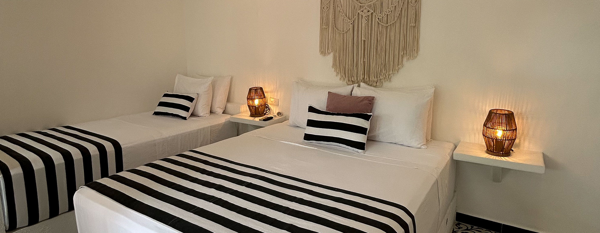 Esta amplia suite, es ubicada en el primer piso. Una opción ideal para quienes buscan comodidad y relajación. Amplia, tranquila y confortable. Ideal para familias o grupos de amigos que desean descansar en un ambiente sereno. Su estilo colonial y ubicación privilegiada hacen de esta suite una excelente opción para disfrutar de Santa Marta con total comodidad.